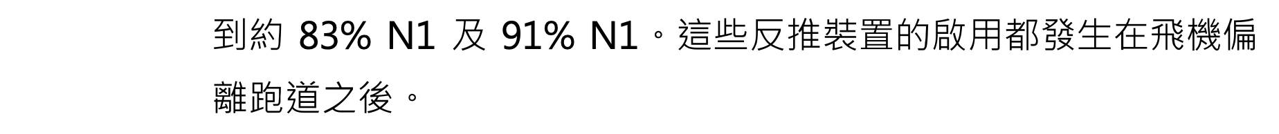 针对驾驶舱的调查结果显示,飞机当时的自动刹车选择器显示为“解除”,减速板操纵杆位于“飞行定位”位置,1号、2号、3号发动机推力杆关闭,反向推力杆设定为最大值。值得留意的是,4号发动机推力杆处于全速前进推力位置且4号发动机的反推力杆也处于最前的位置。燃油控制开关则设定为“运转”模式。