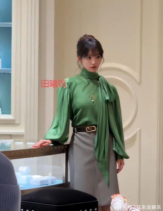 田曦薇的GUCCI造型我真是看愣了——墨绿色缎面衬衫像塑料大棚的反光,灰色A字裙刚好卡在大腿最粗的位置,合照时被穿低胸吊带的网红抢镜,笑得一脸“营业感”,网友说“像服务生站老板娘旁边”真没夸张。之前Vogue盛典的金发芭比还上热搜呢,怎么突然就翻车?垫肩塌得像挂了俩空衣架,齐刘海贴脑门显脸又圆又肿,粉丝说角度问题,但视频里的肿脸和塌肩是骗得了人的?时尚圈不是常说“适合比贵重要”吗?